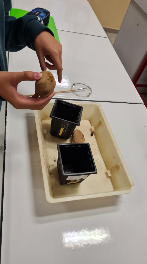 Les élèves ont ensemencé des germinations de tubercules de pomme de terre avec un champignon endomycorhizien Glomus.