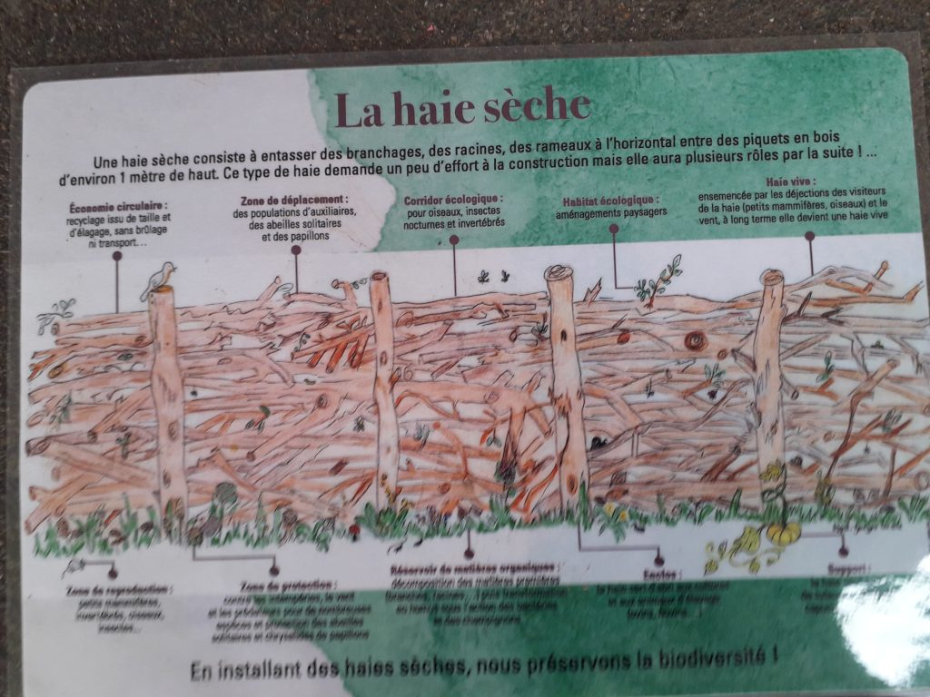 Les 6emeB, divisé en 2 groupes, ont construit deux haies sèches. Ces dernières ont été positionnées sur des lieux de passage afin de lutter contre le piétinement et régénérer le sol. Aussi elles sont utiles pour les oiseaux, les petits mammifères, les reptiles, les amphibiens et les insectes, qui pourront s’y réfugier, y trouver un abri ou s’y reproduire.
